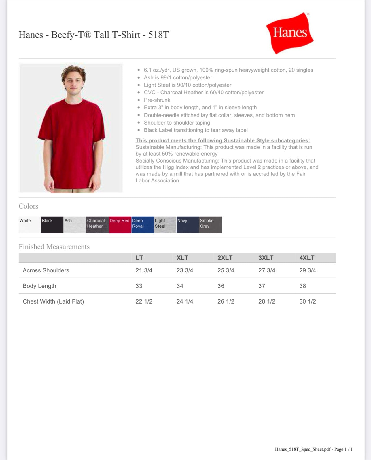 3XTALL BLACK HANES BEEFY-T TALL T-SHIRT - 518T