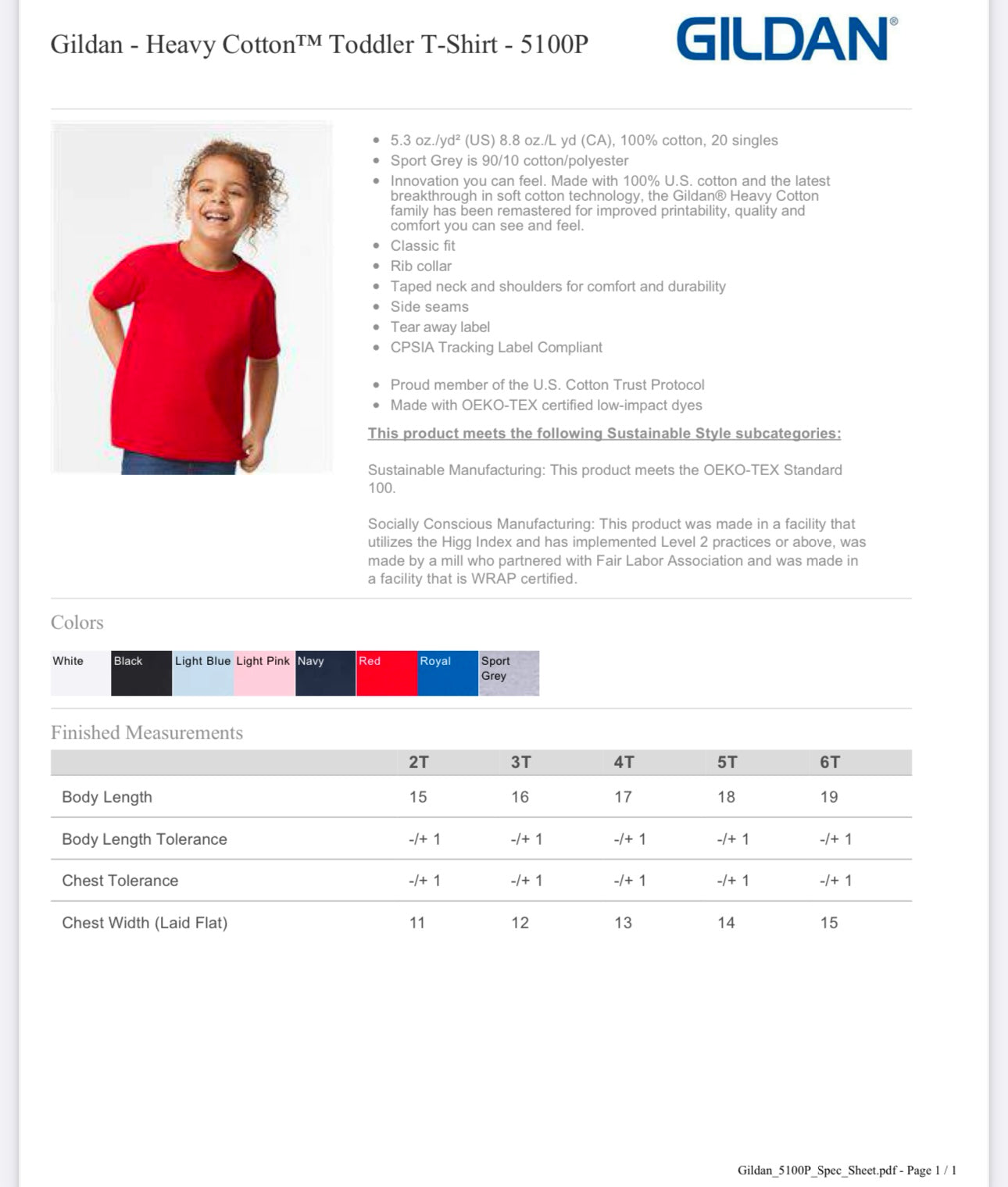 5T SPORT GREY GILDAN - HEAVY COTTON TODDLER T-SHIRT - 5100P