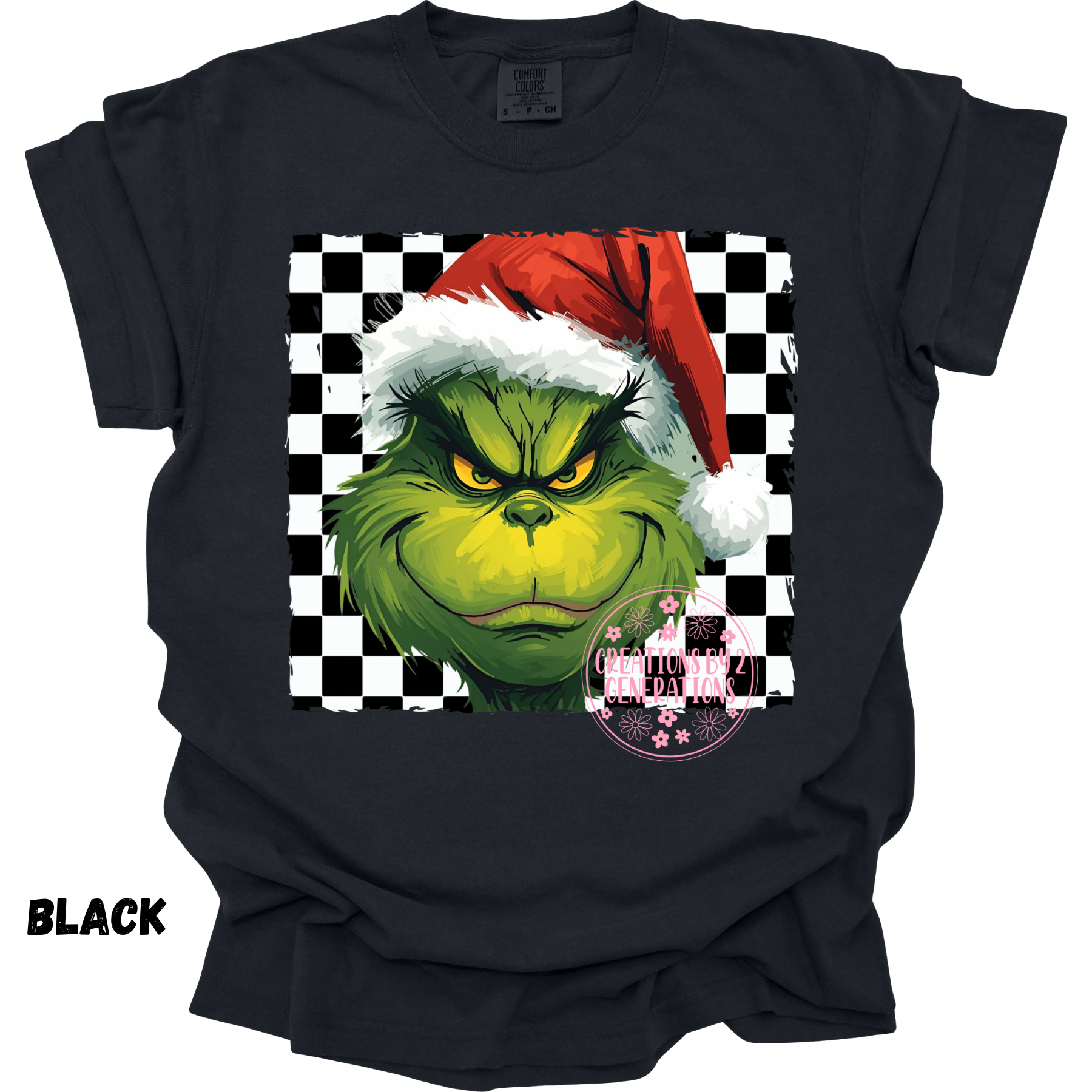 YOUTH SMALL CC BLACK G BLACK WHITE CHECKS WITH SANTS HAT $18