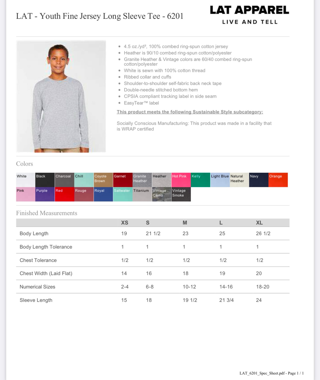 YOUTH LARGE HOT PINK LAT - YOUTH FINE JERSEY LONG SLEEVE TEE - 6201